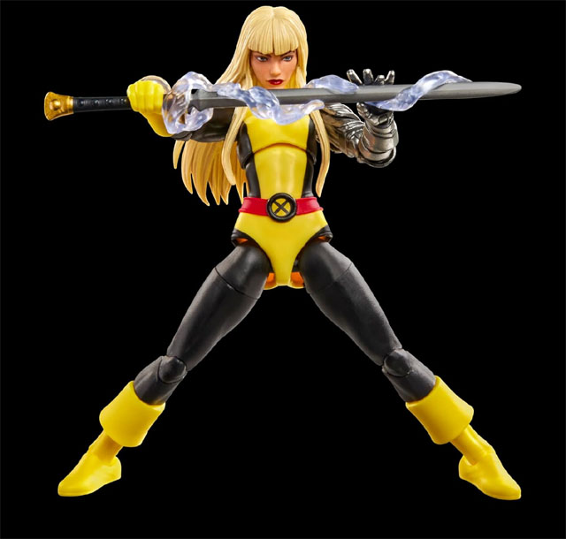 Magik is sort of a basic design, but the head sculpt looks swell, as does her pin-less teen girl body mold. The gloved and armored hands are a nifty inclusion that complement the integral Soulsword (with magic effects piece!) well.